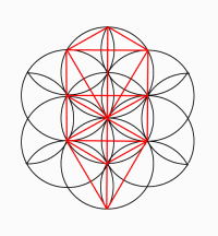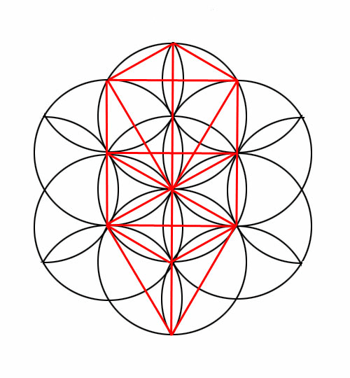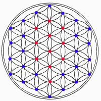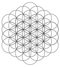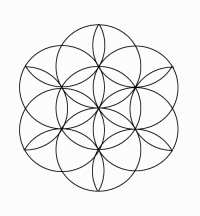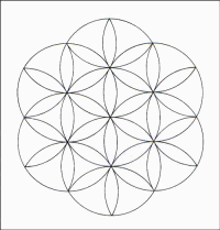 Remember we have four points, two serve as the centers of the two circles, and two on the cross sections of the two circles. Those two cross points seem the be the only likely places that would serve as centers for two more circles: But this doesn't look quite symmetrical, and the universe likes symmetry, thus it produces two more circles: Sometimes also depicted as follows when you fill in the remaining 'petals': The Tree of Life