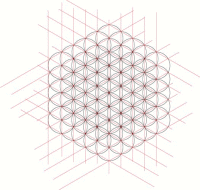 In my previous articles I have shown that I discovered that the Sephiroth have their place on the intersection of four symmetrically interlocking circles; only to find out later that others had discovered this as well. So it's nothing new. The intriguing part is the symmetry of interlocking circles and the possibility of two more Sephiroth just above Malkuth. But it gets even more interesting. In my article of The Structure of the Tree of Life I have shown that this pattern of the four interlocking circles is part of the Flower of Life. There had been a lot of interest in The Flower of Life pattern, as it is being discovered in traditions and ancient cultures all over the world. The Flower of Life is a basic energy grid that can be seen as interlocking circles within one circle, or as a hexagonal grid of straight lines. I think the Tree of Life is a part of an energy structure, that is commonly known as the Flower of Life, but which can also be extended into infinity. Let's first go into what the Flower of Life is. Here is an example of the Flower of Life engraved into a temple wall in Egypt. Even Leonardo Da Vinci was acquainted with the Flower of Life, which shows up in his drawings.
