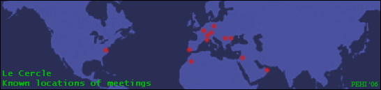 group' [1] Known historical Cercle meetings (these days it meets one a year in Washington and once a year at an overseas location) [2] Known historical Cercle participants Special thanks to the four Davids David X: Too much of a liability, as most of his claims are ridiculous. Just the first I heard to bring up the name, even though he didn't provide any details. David Teacher: For all his early work on Le Cercle that was published in Lobster. In 1991, Lobster announced that David would soon publish a book on Le Cercle in France, soon to be followed by a book in English. Unfortunately, that was the last we heard from David, a translator at the EU in Brussels. The names he mentioned in Lobster have been crucial in putting together this article. David Guyatt: For his article 'Circle of Power' and for one of his emails going around the net in which he mentioned that author Robert Hutchinson (briefly) adressed Le Cercle in his book 'Their Kingdom Come'. David "88": For giving unlimited and free access to a variety of databases. David's databases were crucial in making this article as extensive as it is now. And finally, let's not forget an email from April 19, 2006 with the advice to look at David Rockefeller's biography. This kickstarted a second, and far more detailed, look into Le Cercle.