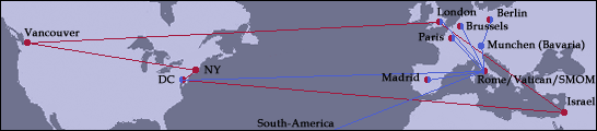 Also, through J. Peter Grace and Americares, Cercle members General Stilwell and Zbigniew Brzezinski certainly were as close to the Knights of Malta as you can get without actually becoming a member. Many associates of the Cercle were also Knights of Malta. Examples are Licio Gelli, official head of the P2; Count Alexandre de Marenches, a rival of Jean Violet who set up the Safari Club with CIA knights; and Prince Valerio Borghese, who led the aborted 1970 coup in Italy on behalf of the CIA. Borghese's closest associates were James Jesus Angleton and former Nazi General Otto Skorzeny, both also Knights of Malta. Other Cercle members like Carlo Pesenti, Monsignor Brunello and Count Hans Huyn haven't been named as members of Opus Dei or the Knights of Malta, but were so close to the Vatican's reactionary establishment that it's likely that some day they'll also turn out to have belonged to one of these two groups. And if not, there are quite a number of other candidates in the Cercle ranks. There also are three non-Catholic British Cercle participants that have become members of the Sacred Military Constantinian Order of Saint George, a Catholic templar order headed by Prince Carlo de Bourbon, the Duke of Calabria. Like Opus Dei and the Knights of Malta, any possible deeper purpose of this order is not public knowledge. Former Cercle president Jonathan Aitken seems to be the only person in Le Cercle involved with the Jesuits, which are generally seen as less reactionary than Opus Dei and the Knights of Malta. Additionally, a number of Cercle members have been involved with institutions with strong links to the Moonie cult. Among them are the Victims of Communism Memorial Foundation, which counted the involvement of Brian Crozier, Edwin Feulner and Zbigniew Brzezinski; and the Global Economic Action Institute, of which the London branch was chaired by Julian Amery, head of Le Cercle at the time the story came out.