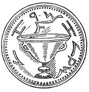 Crystal is a hard, transparent, colourless 'stone' composed of simple plates, giving fire with steel, not fermenting with acid menstrua, calcining in a strong fire, of a regular angular figure, supposed by some to be 'formed of dew coagulated with nitre'. Amber is a solidified resinous gum, and is commonly full of electricity. It was supposed, in the hands of those gifted correspondingly, to abound with the means of magic. In this respect it resembles the thyrsus or pinecone, which was always carried in processions--Bacchanalian or otherwise--in connexion with the mysteries. We can consider the name of the palace, or fortress or 'royal' house in Grenada, in Spain, in this respect following. The word 'Alhambra' or 'Al-Hambra', means the 'Red'. In Arabia this means the place of eminence, the 'place of places', or the 'Red', in the same acceptation that the sea between Arabia and. Egypt is called the 'Red Sea'. All spirits generally (in connexion with those things supposed to be evil or indifferent especially) are 'laid' in the 'Red Sea', when disposed of by exorcism, or in forceful conjuration. We think that this 'Ham-bra', 'ambra', or 'ambre', is connected with the substance amber, which is sometimes very red, and which amber has always been associated with magical influence, magical formularies, and with spirits. We have seen an ancient crucifix, carved in amber, which was almost of the redness of coral. Amber has always been a substance (or gem, or gum) closely mingling with superstitions, from the most ancient times. For further connected ideas of the word 'amber,' and the substance 'amber' in relation to magic and sorcery, and for the recurrence of the word 'amber' and its varieties in matters referring to the mysteries and the mythology generally of ancient times, the reader will please to refer to other parts of this volume. While excavations were in progress at a mound in Orkney, described by Mr. John Stuart, Secretary of the Society of Antiquaries of Scotland, on July 18th, 1861, numerous lines of 'runes' of various sizes were found on the walls and on the roof of a large vaulted chamber in the earth. When the discoveries were completed, the series of runes exceeded 700 in number; figures of 'dragons and a cross' were also cut on some of the slabs. There are many mounds of various forms and sizes in this part of Orkney, and there is a celebrated circle of Druidical Stones on the narrow peninsula which divides the two lochs of Stennis. Pliny says that the word 'boa', for a snake, comes from 'bovine', because 'young snakes are fed with cow’s milk'. Here we have the unexpected and unexplained connexion of the ideas of 'snake' and 'cow'. The whole subject is replete with mystery, as well as the interchange of the references to the 'Cross' and the 'Dragon' found in the insignia of all faiths, and lurking amongst all religious buildings. On a Phœnician coin, found at Citium or Cyprus, and engraved in Higgins's Celtic Druids, p. 117, may be seen a cross and an animal resembling a hippocampus, both of which, or objects closely similar, appear on ancient sculptured stones in Scotland. The same two things, a cross and a strange-looking animal, half mammal, half fish or reptile, but called by Mr. Hodgson, of Newcastle-upon-Tyne, a Basilisk; appear together on a Mithraic sculptured slab of the Roman period, found in the North of England. What is more remarkable still, the 'star' and 'crescent', or 'sun' and 'moon', also appear, the whole being enclosed in what has been called the 'Fire-Triangle', or 'Triangle with its Face Upwards'. The Builder, of June 6th, 1863, has some valuable observations on 'Geometrical and other Symbols'. The title 'Fig. 22' appears at this point, but there is no accompanying illustration.--JBH. In regard to the word 'Alhambra', we may associate another word appropriated to Druidical Stones in England, Men-Amber. A famous Logan-Stone, commonly called 'Men-Amber', is in the parish of Sethney, near Pendennis, Cornwall. It is 11 feet long, 4 feet deep, and 6 feet wide. From this the following derivatives may be safely made: Men-Amber, Mon-Amber, Mon-Ambra, Mon-Amrha, Mon-Amra (M’Om-Ra, Om-Ra), 'Red Stone', or Magic, or Angelic, or Sacred Stone. This red colour is male--it signifies the Salvator. The following is the recognitory mark or talisman of the Ophidiæ: Φ. The Scarabæus, Bee, Ass, Typhon, Basilisk, Saint-Basil, the town of Basle (Basil, or Bâle), in Switzerland (of this place it may be remarked, that the appropriate cognisance is a 'basilisk' or a 'snake'), the mythic horse, or hippocampus, of Neptune, the lion, winged (or natural), the Pegasus or winged horse, the Python, the Hydra, the Bull (Osiris), the Cow (or Io), are mythological ideas which have each a family connexion. All the above signify an identical myth. This we shall presently show conclusively, and connect them all with the worship of fire. Our readers have no doubt often wondered to see on the table-monuments in Christian cathedrals a creature resembling a dog, or generally like some four-footed animal, trampled by the feet of the recumbent effigy. It is generally a male which is represented as performing this significant efforcement, trampling or piercing with the point of his sword, or the butt of the crosier (in his left hand, be it remembered). This crosier is the ancient pedum, or lituus. At Brent-Pelham, in Hertfordshire, there is a tomb, bearing the name of a knight, Pierce Shonke, built in the wall. He is said to have died A.D. 1086. Under the feet of the figure there is a cross-flourie, and under the cross a serpent (Weever, p. 549). There is an inscription which, translated, means: Nothing of Cadmus nor Saint George, those names of great renown, survives them but their names;
