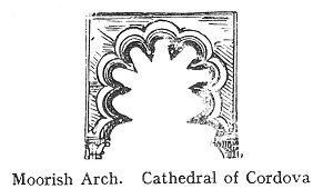 CHAPTER THE TWENTIETH: MYSTIC CHRISTIAN FIGURES AND TALISMANS Moorish Arch. Cathedral of Cordova OUR engraving borrows from the West Front of Laon Cathedral, France, a Catherine-Wheel (or 'Rose') Window. The twelve pillars, or radii, are the signs of the Zodiac, and are issuant out of the glorified centre, or opening 'rose'--the sun, or 'beginning of all things'. 'King Arthur’s Round Table' displays the 'crucified' Rose in its centre.