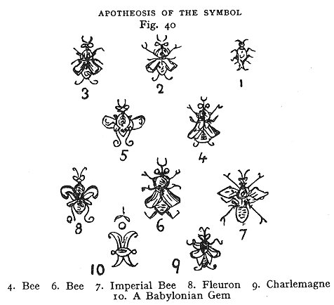 APOTHEOSIS OF THE SYMBOL The opinion of M. Dupuis was (see his learned memoir concerning the origin of the constellations), that 'Libra' was formerly the sign of the vernal equinox, and 'Aries' of the nocturnal, autumnal equinox; that is, that since the origin of the actual astronomical system, the procession (precession?) of the equinoxes had carried forward by seven signs the primitive order of the Zodiac. Now, estimating the procession (precession?) at about 70½ years to a degree, that is, 2115 years to each sign, and observing that 'Aries' was in its fifteenth degree 1447 before Christ, it follows that the first degree of 'Libra' could not have coincided with the vernal equinox more lately than 15,194 years before Christ, to which, if you add 1790 years since Christ, it appears, that 16,984 years have elapsed since the origin of the 'Zodiac' (Volney, Ruins of Empires, 1st English edition, 1792, p. 360). All white things express the celestial and luminous gods; all circular ones, the world, the moon, the sun, the destinies; all semicircular ones, as arches and crescents, are descriptive of the moon, and of lunar deities and meanings. Fig 41 'The Egyptians', says Porphyry, 'employ every year a talisman in remembrance of the world. At the summer solstice, they mark their houses, flocks, and trees with red, supposing that on that day the whole world had been set on fire. It was also at the same period that they celebrated the Pyrrhic or "Fire Dance".' (And this illustrates the origin of the purifications by fire and water.) There are seven planets in the solar system. These seven planets are signified in the seven-branched candlestick of the Jewish ritual. The number is a sacred number. These seven 'prophets', or angels, have each twelve apostles, places, stella, 'stalls', or regions or dominions (stalls as 'stables'), for the exercise of their powers. These are the twelve divisions of the great Circle, or the twelve signs of the Zodiac. All this is Cabalistic, Magical, Sabaistical, and Astrological. The name Ashtaroth or Astarte has been derived from Ashre, aster, ast, star, or 'starred'; in the same way as the word Sephi-roth comes from the Hebrew root, 'roth'. On the black sacred stone ('Kebla', or 'Cabar') at Mecca, 'there appears the figure of a human head cut', 'which some take to be the head of a Venus' (Enthumius Zyabenus, Mod. Un. Hist. i. 213; Sale's Discourse, p. 16; Bibliotheca Biblia, i. 613, 614). Man’s ideas, outwards from himself, must always become more dreamlike as they recede from him, more real as they approach him. _______________ Notes: 1. Mark--the letters G and C are convertible: Thus Gab or Cab ('Gab'
