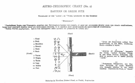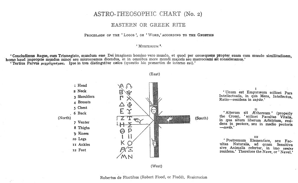 CHAPTER THE NINTH: ASTRO-THEOSOPHICAL (EXTRA-NATURAL) SYSTEM OF THE ROSICRUCIANS-THE ALCHEMIC MAGISTERIUM OR 'STONE' THE letters of all languages are significant marks or symbols, which have the 'Twelve', or rather the original 'Ten Signs' of the 'Zodiac' for their beginning. Of these letters there is a certain group which has, in the characters of all languages, a secret hieroglyphical, hagiographical reference to the originally single, and afterwards double, sign 'Virgo-Scorpio', which is supposed to give the key to the secret or cabalistic 'Story of Creation'. These letters are S and Z, L and M; or rather a group, which is marked by Λ, Π, Μ, Σ, S, Z--L, M, V, W. The significant aspirates, or 'vowel-sounds', follow the same rule. The 'Snake-like Glyph', or 'mystery of the Serpent', or disguise, in which the 'Recusant Principle' is supposed to have invested himself, has coiled (so to say), and projects significant curves and inflections, through all this group of letters and sounds; which is perceivable, by a close examination and quick ear, in all languages, living and dead. The sigma presents itself to the eye (that recognizes) in the Hebrew, the Sanscrit, the Persian, the Arabic, the Coptic, the old Gothic, the Georgian or Iberian, the Ancient Armenian, the Ethiopic or Gheez, the Sclavonic, the Greek, the Latin, the Samaritan, the Irish, the Etruscan--of all which alphabets, and the symbols serving for their 'numerals', we had prepared a comparative table, to prove the identity of the sign 'Virgo-Scorpio' and its ciphers; but we forbore in deference to our limits (and from other circumstances), which did not advisedly admit of the addition. A comparative display of all marks or symbols which give occult expression to the 'female side of nature', and its astronomical and astrological signs, affords the same result of identity. The marks of the 'signs' ♍ and ♏, and their ciphers, are interchangeable, and reflect intimately from one to the other. It must be remembered that the sign Libra--our modern September--the 'hinge-point' or 'balance-centre' of the two wings of the celestial Zodiac--was an addition by the Greeks. Here, according to the Sabæan astrological tradition, the origin of 'Good and Evil', of the malific and the benevolent 'cabalistic investments of nature', the beginning of this 'two-sexed', intelligent sublunary world, were to be found--all contained in the profoundest mysteries of this double sign. The cabalistic theory, and the Chaldæan reading is, that the problems of the production of the sensible world are not to be read naturally, but supernaturally. It was held that man’s interior natural law is contained in God’s exterior magical law. It followed from this that present nature is secondary nature: that man is living in the 'ruins' of the angelic world, and that man himself is a 'ruin'. Man fell into the degradation of 'nature' as the result of the seduction by the woman (to sexual sin), which produced the 'generations' according to Man’s ideas. The strange theories as to the history of the first world prevalent among the Cabalists imply that the appearance of 'woman' upon the scene was an 'obtrusion' in the sense of a thing unintended; even accidental and unexpected in a certain (non natural) sense. Thus her advent upon the scheme of creation--to use one of their mysterious expressions--was at a late spoiled and evil period of the world, which had sunk from the 'supernatural' into the 'natural'. As woman had no part in the earliest world, and as her origin was altogether of another nature and from other sources than that of man, the traces of her introduction, and the hints as to her true character, are to be found mystically in the original sign 'Virgo-Scorpio', double-sided (yet identical) at first but afterwards divided. These divided 'personalities' were set thereafter in mythologic opposition. The reader is referred to the previous Zodiac, fig. 12, where will be found the diagram illustrative of this idea, which was originated amidst the magic of the Syro-Chaldæans; it yet remains the key to all the mythologies and to all the religions. The sign 'Virgo-Scorpio' stands, in the present order of things, or in this non-angelic or mortal world, as a divided sign, because in the 'World of Man' as 'born of Woman'--enmity has been, placed between the 'Snake' and the 'Woman'. Thenceforth, from the 'Fall', and as a consequence of it, they are, in opposition. The sign of the 'Balances' is placed between, as the rescuing heavenly shield, miraculously interposed, separating, as the tremendous 'Ægis', the two originally conjoint signs, and simultaneously presented 'both ways' (to speak in figure), defending 'each from destruction by either'--'until the time shall be complete!'--which means the Apocalyptic 'New Heaven and New Earth'. Marks, movements, or influence from the side of 'Scorpio', or from the sinister side, are malign, and mean danger; because they represent the 'Old Serpent', or, in other terms, the 'Great Deep', or 'Matter'. Of such magic character are the letters 'S' and 'Z', and all their compounds; because this originally 'single' sound, or letter 'S-Z, Z-S', came into the world representing its sinful side. Man is pardoned through the 'Promise to the Woman', and 'Woman' is saved because through her the 'Saviour of the World', or the 'Rescuer of the World', or the 'Deified Man', or the 'Sacrifice', came into the world. Woman has the intermediate office of reconciling and consoling. In the abstract sense, as 'virgo intacta' (or holy unknowing means), woman is free and unconscious of that deadly 'Original Sin', which in the disobedience to the Divine Command (to refrain from that 'Fruit' with 'Eve', or with the 'Natural Woman'), lost 'Man' his place in the scheme of the 'Immortal World'. All this is part of the cabalistic view of the Mysteries of Creation. The Cabalists say that the 'Lost Man' Adam should not have yielded to those which he fou