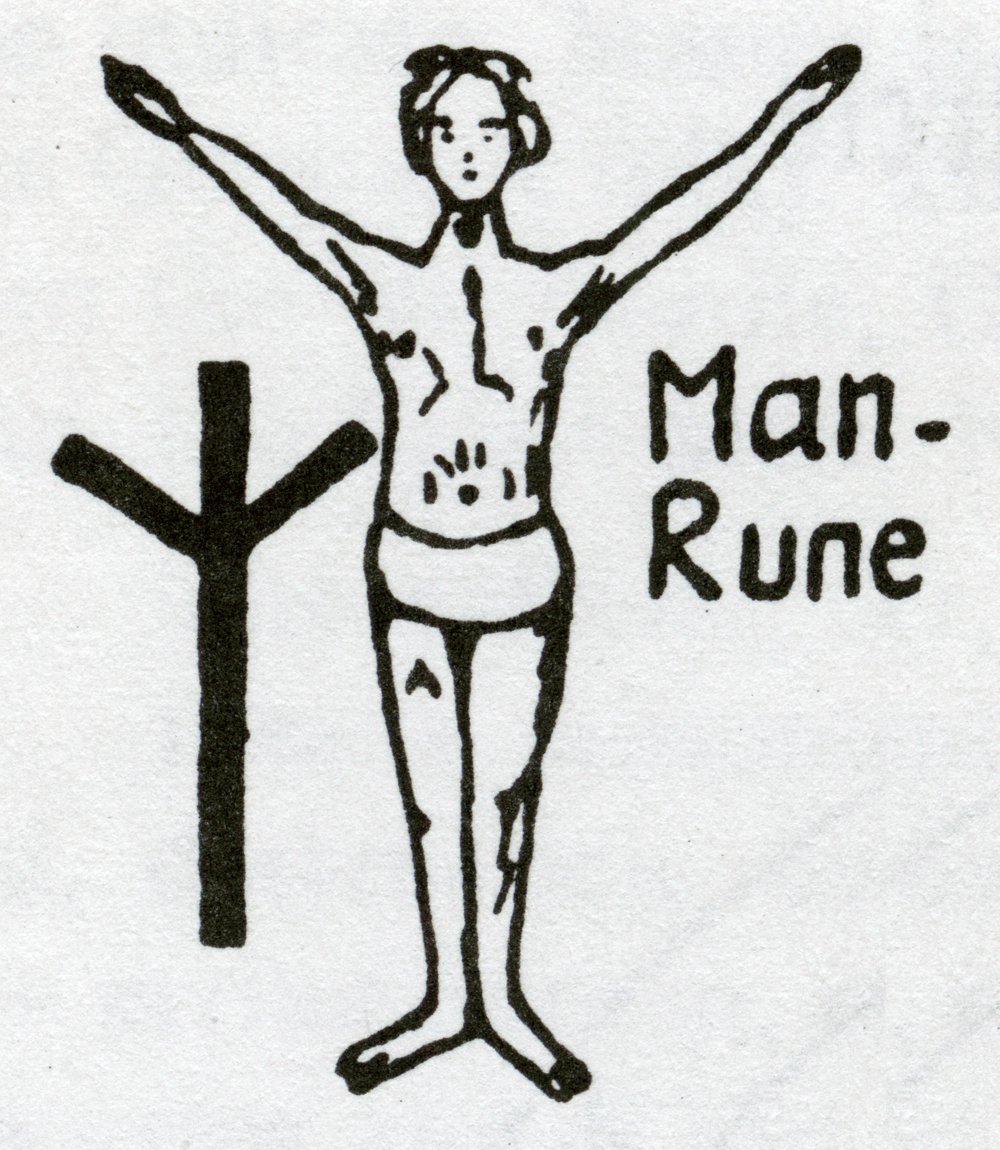 Runic table portrays the holy whispering Row of Man-Runes. I include