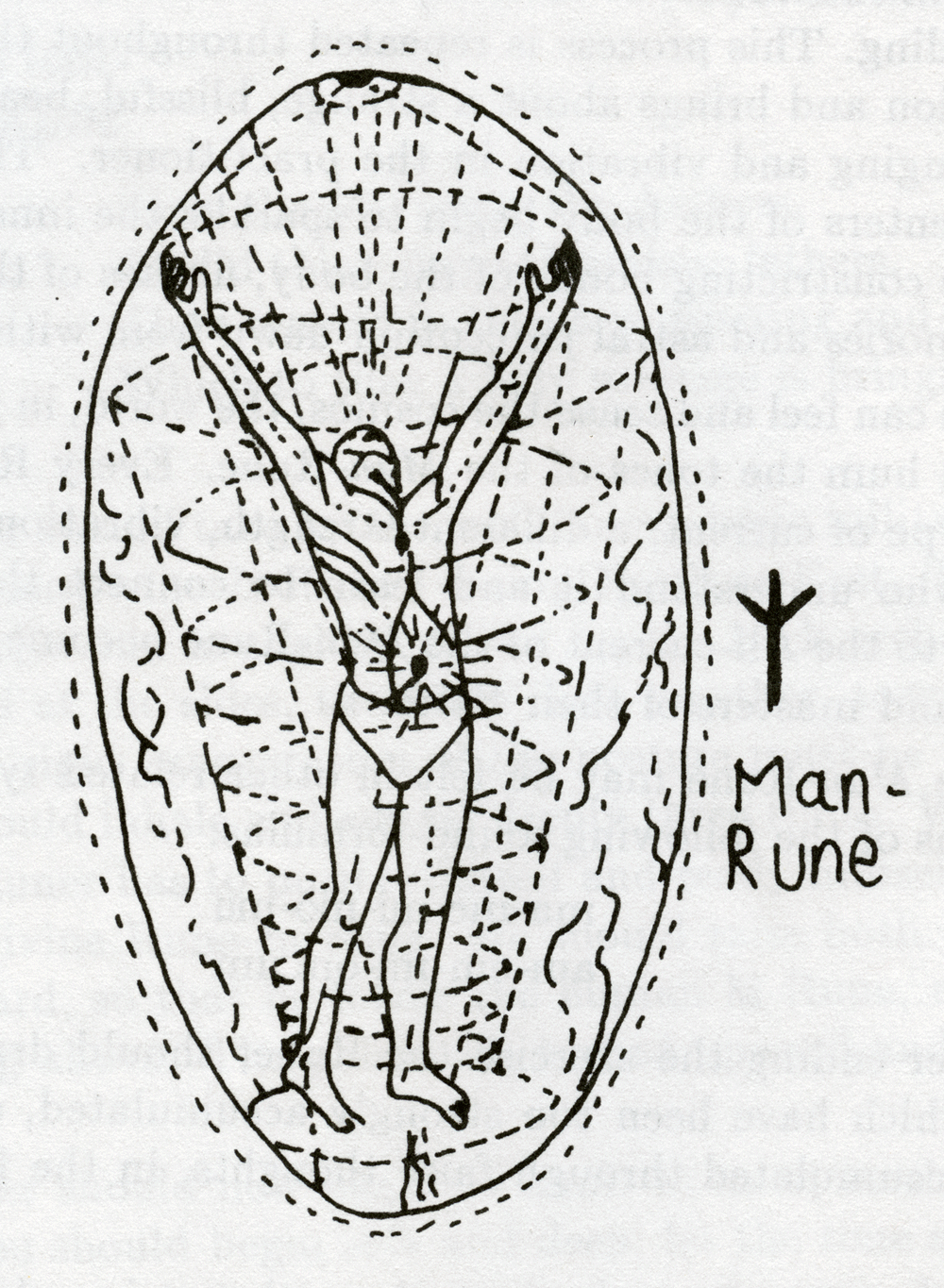 Rune-magic is the great knowledge of cosmic energies, the recognition of hidden energies of nature, of the subtle heavenly, as well as earthly streams, waves, entities, and powers. All forms of higher wisdom, all secret knowledge of the world, are but fragments, and through the course of time have been for the most part distorted and corrupted; but at one time it had its origin in the divine, Aryan magic of the Runes. All languages of the world are derived from the Aryo-Germanic mother-tongue, which is both magical and alive. The Germanic Runic script is the script of all scripts. Runes are not just letters or verbal symbols, but primal symbols of a living magical nature which whisper to us. These may be experienced physically through Runic postures and dances and are useful for your own well-being and even for the blessing of all mankind. Whoever physically forms and experiences the Runes in a pure and conscious manner, will have great secrets opened to him, if he practices, vibrates, and dances in the radio waves, subtle currents and flowing energies of the All. Accompanying ideal higher development, clairvoyance, astral perceptions, heightened psychic ability and prophetic vision will arise in the Runer, in the practitioner. In the small manuscript before you I can give only a few gems from the great treasure trove of Aryan wisdom and Rune-magic, but these will be of great use to the reader and will lead him into the Way of the Grail. To anyone who has greater interest in Runic history, magic and mysteries I recommend my work, Heilige Runenmacht. [1] The following exercises and instructions may be undertaken only with noble and pure thoughts -- the blessings of the Runes will not fail.