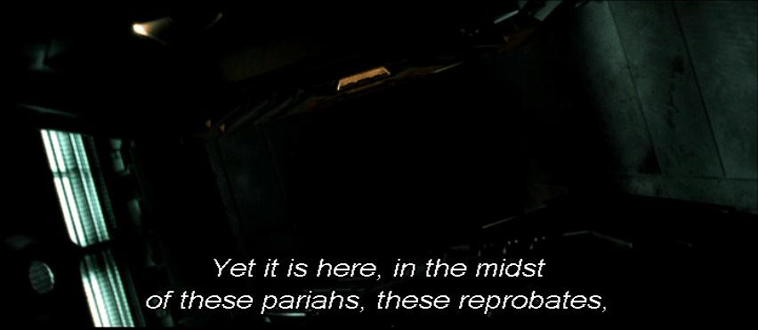 [Persephone] It is said that on the gates of hell is written: "Abandon hope, all ye who enter here." Yet it is here, in the midst of these pariahs, these reprobates, that the true sense of my quest became clear. I, Persephone, having dedicated my life to curing minds,
