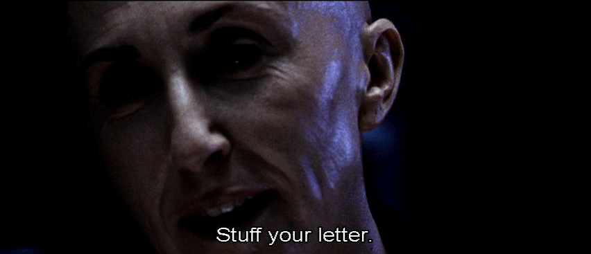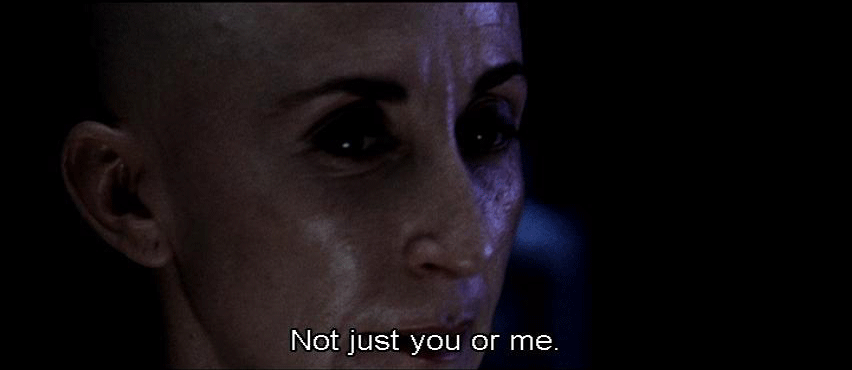 [Elisa] I have an official letter countermanding your authority. [Persephone] Stuff your letter. [Elisa] What do you say, Charon? We've discussed this. You know what to do. [Charon] I'm relieving you of your functions. This is official. [Persephone] Do you realize what's at stake here? Not just you or me. All of humanity.