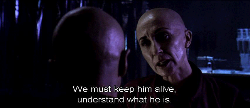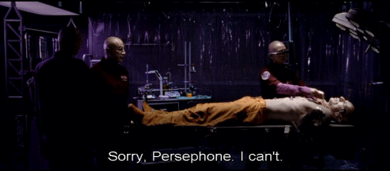 [Charon] Oh, humanity. [Persephone] They'll commercialize his genetic codes and then eliminate him. We must keep him alive, understand what he is. We have to stop her changing his metabolism. Charon. [Charon] Sorry, Persephone. I can't. Neurinos has given her authority over you. They'll leave when the shuttle's ready.