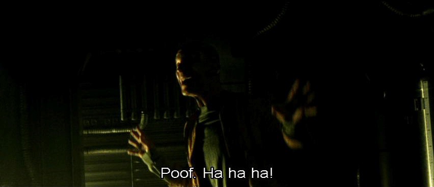 [Attila] I got it off the chief up there to snoop in company files. He thought he controlled me. [Cesar] Get to the point! [Attila] The point? The point? There is no point, Caesar. We've less than an hour to live. After that, poof. Poof. Ha ha ha!