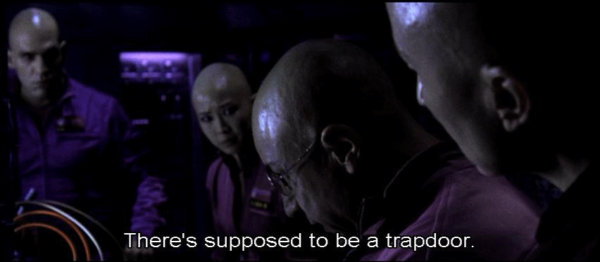 There's supposed to be a trapdoor. If we get there, we could reboot the system. [Persephone] It's in the prisoners' area. [Charon] Yes. [Buddha] Found him? [Raspoutine] No. [Buddha] That way.