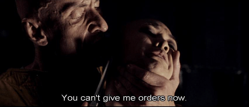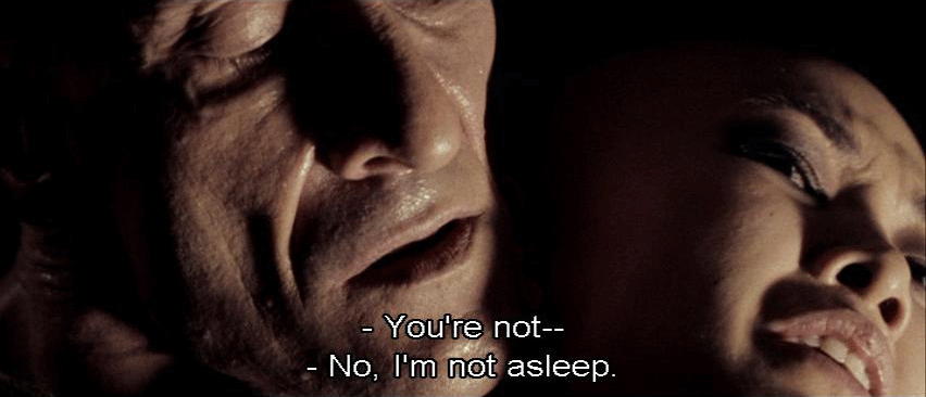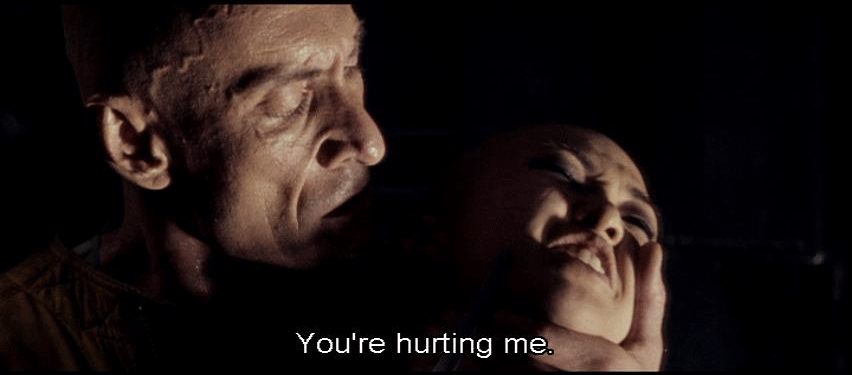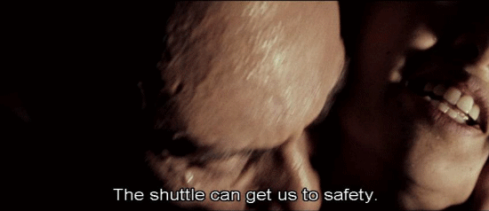 [Elisa] You're not -- [Lazarus] No, I'm not asleep. I can hold my breath. [Elisa] You're hurting me. [Lazarus] You can't give me orders now. Where were you going? [Elisa] The shuttle can get us to safety.