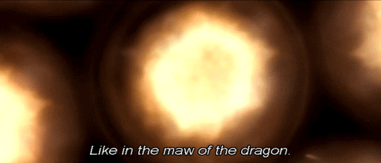 [Persephone] It all began in the fire. The primeval fire. The fire of hell. Like in the maw of the dragon. Like in a fairy tale. If we learn anything from fairy tales, it's not that dragons exist, but that they can be beaten.