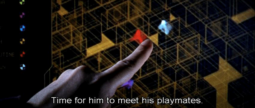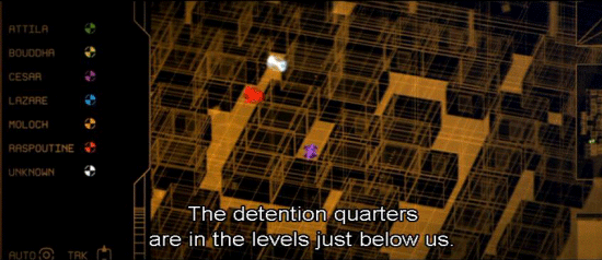 [Charon] The detention quarters are in the levels just below us. Look. The new arrival. Time for him to meet his playmates. They're tagged for permanent tracking. Dear old Rasputin is taking things in hand. Look. That's Rasputin.