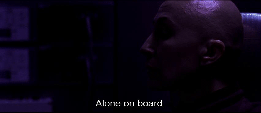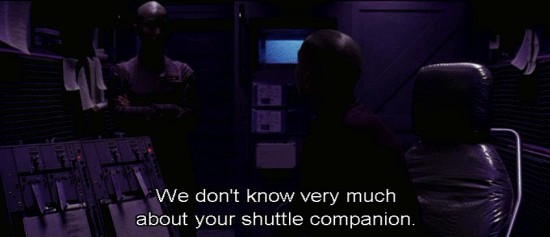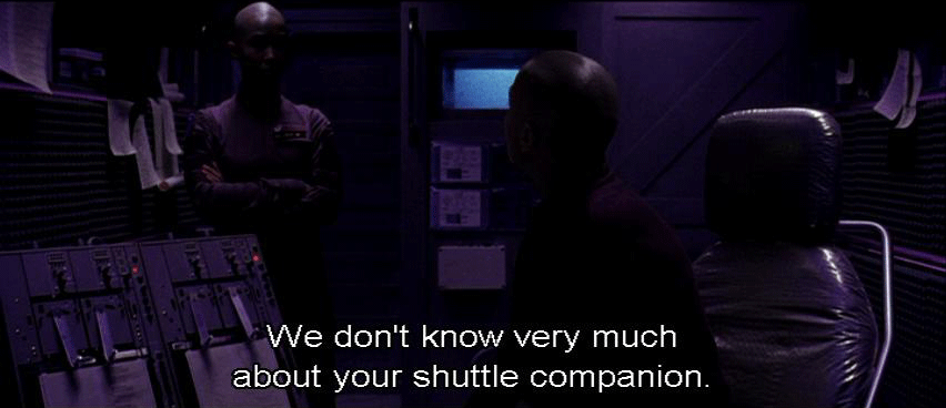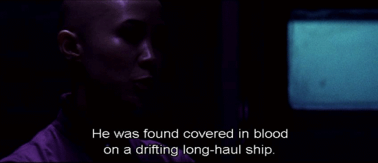 Answer me! [Persephone] We don't know very much about your shuttle companion. [Elisa] He was found covered in blood on a drifting long-haul ship. Alone on board. {Persephone] Any ID? [Elisa] Nothing.
