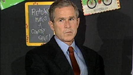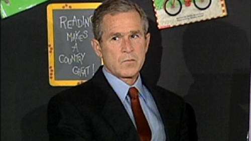 [Larry King] He came to thank you for helping bring America to help him. And now he may be responsible for bombing America. [Prince Bandar] Absolutely. [Larry King] What did you make of him when you met him? [Prince Bandar] I was not impressed too much, to be honest with you. [Larry King] Not impressed? [Prince Bandar] No. I thought he was a simple and very quiet guy. [Moore] Hmm. A simple and quiet guy, whose family just happened to have a business relationship with the family of George W. Bush. Is that what he was thinking about? Because if the public knew this, it wouldn't look very good. Was he thinking, "You know, I need a big, black marker"?