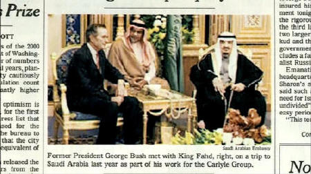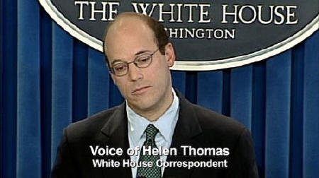 This company is about money, not conspiracies to run the world or engineer political maneuvering and things like that. [Librarian's Comment: "Bullshit!"] It's about making money, and it's about making a lot of money. And they've done very well. [Helen Thomas, White House Correspondent] I could get you on-the-record on this question. In the White House view, there is no ethical conflict in former President Bush and former Secretary of State Jim Baker using their contacts with world leaders to represent one of the most well-known military arms dealers, the Carlyle Group? [Whitehouse Spokesman] The president has full faith that his family will conform with all proper ethics laws and will act properly in their conduct. [Moore] Okay, let's say one group of people, like the American people pay you $400,000 a year to be president of the United States.