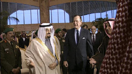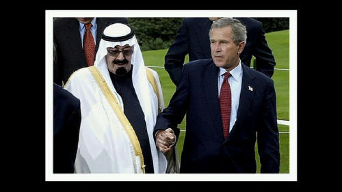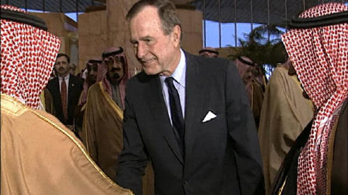 Because that's how much the Saudi royals and their associates have given the Bush family, their friends and their related businesses in the past three decades. [George H. W. Bush] Seems like a very nice reunion with friends. Shiny happy people holding hands Shiny happy people holding hands