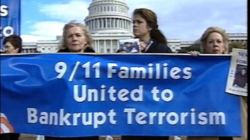 That man was my life, and I have no plan. I was taking a class, and they asked me what was I gonna do in the next five years. And if I'm not doing something with this, I don't know what reason I have to live. So it's very important. Very important. Okay. Okay. [Moore] Ignored by the Bush administration, more than 500 relatives of 9/11 victims filed suit against Saudi royals and others.