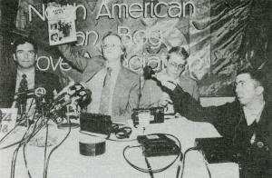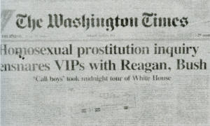 Larry King's party-giving at the Republican national conventions was the stuff of tabloid headlines, as this write-up in the Weekly World News of July 25, 1989 showed. The picture shows King with Maureen Reagan at his 1984 convention party at Southfork Ranch, near Dallas. House on California Avenue, off "Embassy Row" in Washington, D.C., rented by Larry King for $5,000 a month. King's parties here were attended by officials of the Reagan-Bush Administration and members of Congress from both parties, according to witnesses. The front page of the Washington Times, June 29, 1989. Homosexual prostitution inquiry ensnares VIPs with Reagan, Bush In a July 5, 1989 follow-up story, the Washington Times highlighted the connections of Craig Spence, central figure in the Washington "call boy" scandal. According to Washington insiders, Spence ran a prostitution business with Larry King. Spence was found dead in a Boston hotel room in 1989. A 1982 press conference by David Thorstadt of the North American Man-Boy Love Association (NAMBLA), whose slogan is "Sex before 8, or it's too late." Paul Bonacci testified to being transported and abused by NAMBLA. John Gosch, Sr. with a poster of his missing son. In 1983, at the age of 12, Johnny Gosch was kidnapped while on his newspaper route in Des Moines, Iowa. In 1990 and 1991, Paul Bonacci provided dramatic new information on the Gosch case. Jill Cutshall, 9 years old, was kidnapped from her home in Norfolk, Nebraska in 1987. She was never seen again. Investigator Roy Stephens helped trace David Phelps, who was convicted of abducting her for sexual abuse. In 1991, Stephens investigated and confirmed leads provided by Paul Bonacci on other major kidnapping and abuse cases. The Italian weekly Avvenimenti, circulation 300,000, printed an explosive expose of the Franklin scandal. The authors were Italian investigative journalists, who visited Nebraska in May 1991. The Rev. James Bevel, close associate of the late Dr. Martin Luther King, Jr., leads a picket line during 1991, against the cover-up of child abuse in Omaha. An entrance to the Nebraska State Capitol. Over the door is inscribed: "The salvation of the state is watchfulness in the citizen."