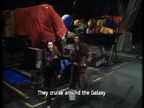 [Ford] Rich kids with nothing to do. [Ford] They cruise around the Galaxy [Ford] looking for planets that no one's made contact with yet and buzz them. [Arthur] Buzz them? [Ford] Yeah. They find some isolated spot, |