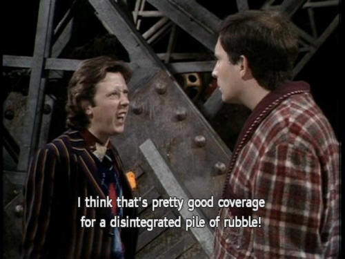 [Ford] I think that's pretty good coverage for a disintegrated pile of rubble! [Arthur] That's meant to make me feel better? [Ford] Come on! Let's get to the teleport. |