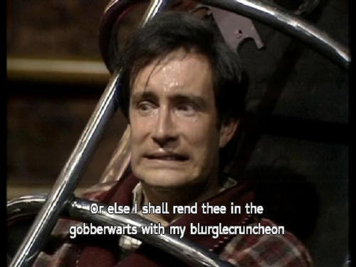 [Vogon Captain] Or else I shall rend thee in the gobberwarts with my blurglecruncheon