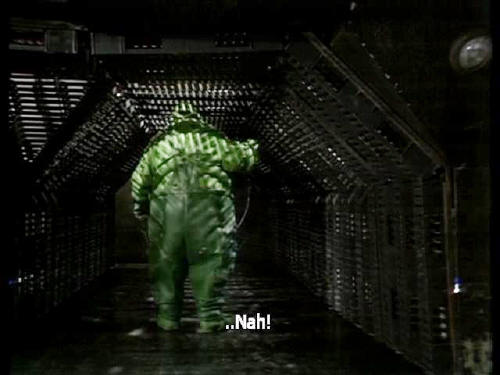 [Vogon Guard] ... Nah! [Arthur] We're trapped now, aren't we? [Ford] Yeah, we're trapped. [Ford] Well, didn't you think of anything? [Ford] Yeah. [Arthur] What? |