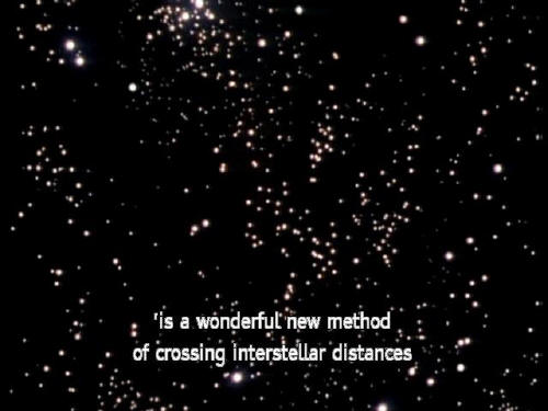 [Arthur] Ford, there's an infinite number of monkeys out here [Arthur] who want to talk to us about this script for Hamlet they've worked out. 'The Infinite Improbability Drive 'is a wonderful new method of crossing interstellar distances |