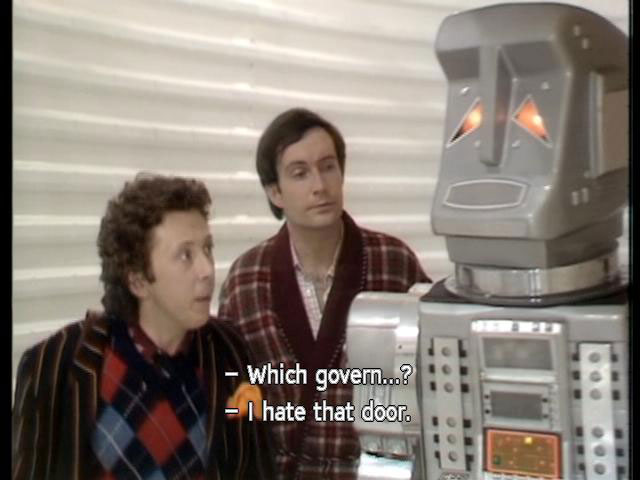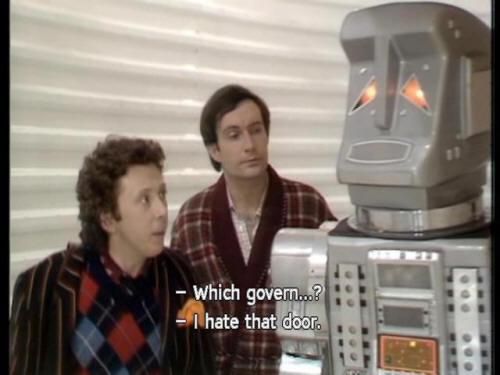 [Ford] Which govern ...? [Marvin] I hate that door. [Marvin] I'm not getting you down, am I? [Ford] Which government owns this ...? [Marvin] No government owns it. It's been stolen. |