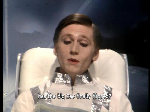 [Reporter] of the Improbability prototype ship, by none other than Zaphod Beeblebrox, [Reporter] And the question everyone's asking --- [Reporter] has the big Zee finally flipped? [Reporter] Beeblebrox, inventor of the Pan Galactic Gargle Blaster, |