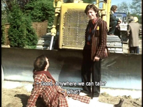 [Ford] Look, are you busy? [Arthur] Busy?! Well, I've just got this bulldozer to lie in front of, [Arthur] or it'll knock my house down, but otherwise ... no, not especially. Why? [Ford] Good. Anywhere we can talk? [Arthur] What? |