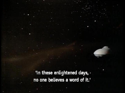 'and its memory soon passed into the obscurity of legend. 'In these enlightened days, no one believes a word of it.' [Ford] I don't believe a word of it. (SQUEAKING) |