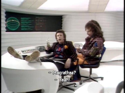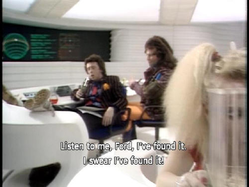 [Zaphod] Listen to me, Ford, I've found it. I swear I've found it. [Ford] Magrathea? [Zaphod] Yeah! [Ford] A non-existent planet. [Zaphod] Yeah, er no .... Listen ... it's ... |