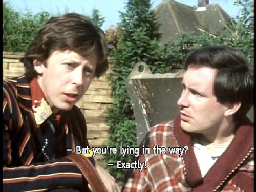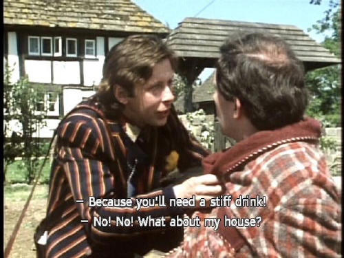 [Ford] Because you'll need a stiff drink! [Arthur] No! No! What about my house? [Ford] He wants to knock your house down? [Arthur] Yes. [Ford] But you're lying in the way? [Arthur] Exactly! |