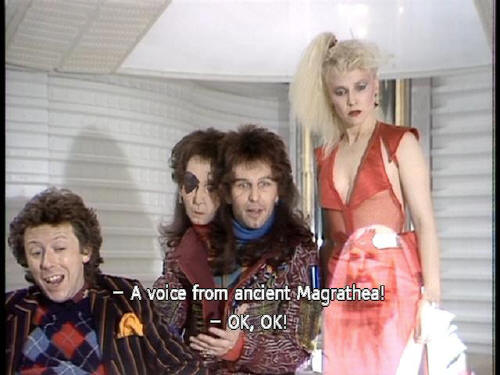 [Slartibartfast] as I'm afraid we're all out at the moment. [Slartibartfast] The Commercial Council of Magrathea ... [Zaphod] A voice from ancient Magrathea! [Ford] OK, OK! [Slartibartfast] ... regrets that the entire planet is temporarily closed for business. |