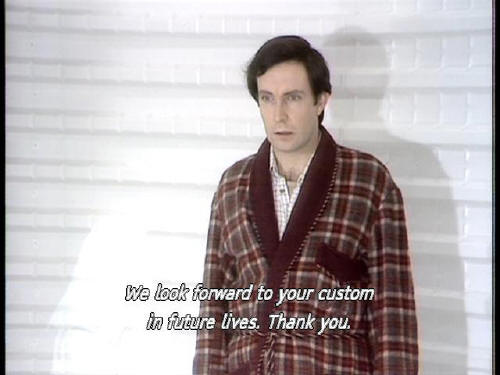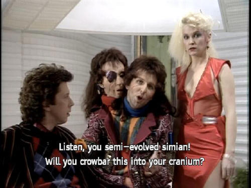 [Slartibartfast] We look forward to your custom in future lives. Thank you. [Arthur] If that's their sales pitch, what's the complaints department like? [Zaphod] Listen, you semi-evolved simian! Will you crowbar this into your cranium? [Zaphod] We just triggered off an ancient recording device. |