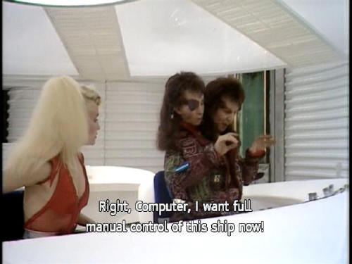[Computer] Please call me Eddie if it will help you relax. [Zaphod] Right, Computer, I want full manual control of this ship now! [Computer] You got it. [Trillian] But can you fly her? [Zaphod] No. Can you? [Trillian] No. |