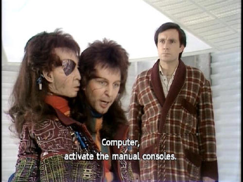 [Zaphod] Ford? [Ford] No. [Zaphod] Fine. We'll do it together. [Arthur] I can't either. [Zaphod] I'd guessed. [Zaphod] Computer, activate the manual consoles. |