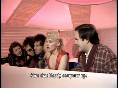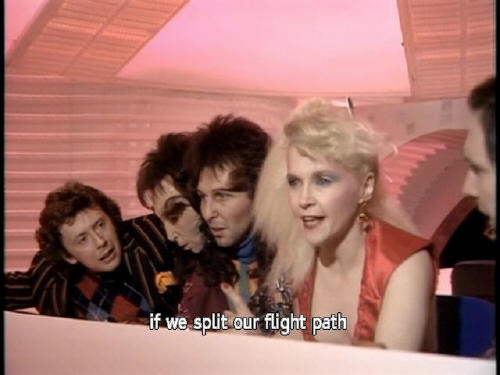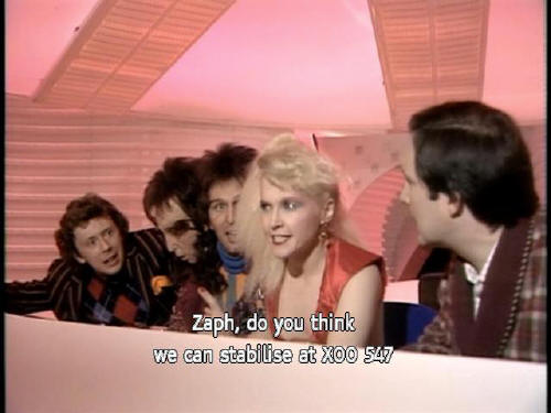 [Computer] Hold your head up high ... [Zaphod] Shut that bloody computer up! [Trillian] Zaph, do you think we can stabilise at X00 547 [Trillian] if we split our flight path |