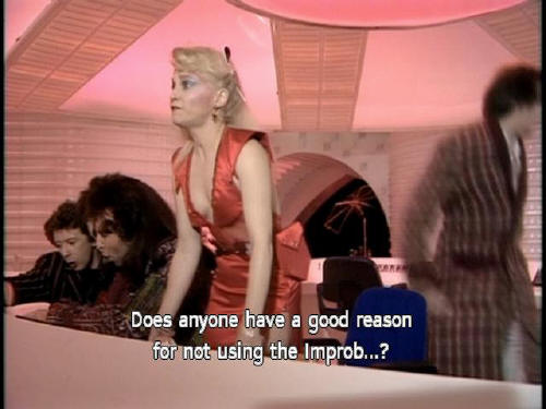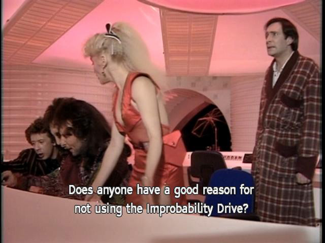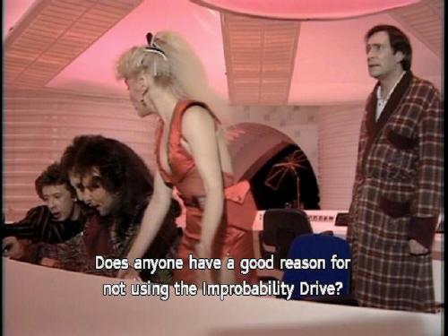 [Arthur] Whereas, at the moment, we just definitely die. Is that it? [Trillian] Does anyone have a good reason for not using the Improbability Drive? [Computer] It's been great getting to know all you guys. God bless. [Trillian] Does anyone have a good reason for not using the Improb ...? |