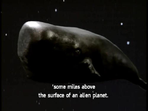 'Another thing that nobody made too much fuss about 'was that, against all probability, 'a sperm whale had suddenly been called into existence 'some miles above the surface of an alien planet. |