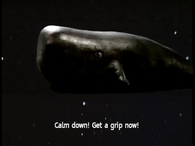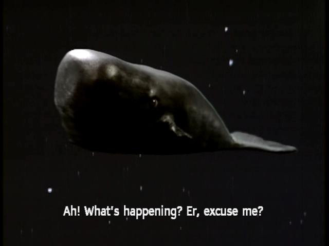 [Whale] Ah! What's happening? Er, excuse me? [Whale] Who am I? Why am I here? What's my purpose in life? [Whale] What do I mean by, "Who am I"? [Whale] Calm down! Get a grip now! |