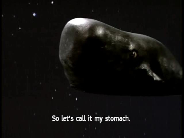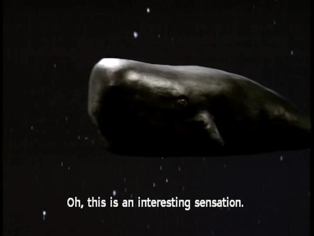 [Whale] Oh, this is an interesting sensation. [Whale] It's a sort of yawning, tingling sensation in my ... my ... [Whale] Well, I better start finding names for things ... [Whale] So let's call it my stomach. |