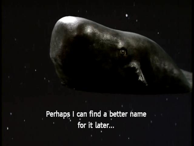 [Whale] Perhaps I can find a better name for it later ... [Whale] Hey, what's this thing? [Whale] Let's call it a tail! Yeah, tail. [Whale] Hey, I can really thrash it about pretty good, can't I? Wow! Wow! Hey! |
