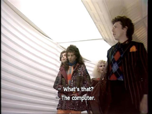 [Computer] Good afternoon, boys. [Trillian] What's that? [Zaphod] The computer. [Zaphod] It's an emergency back-up personality that I thought might work out better. [Computer] Now, this is going to be your first day on a strange planet, |