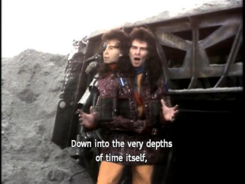 [Zaphod] Into the interior of the planet! [Zaphod] That is where we have to go! [Zaphod] Down into the very depths of time itself, [Zaphod] where no man has trod these five million years! |