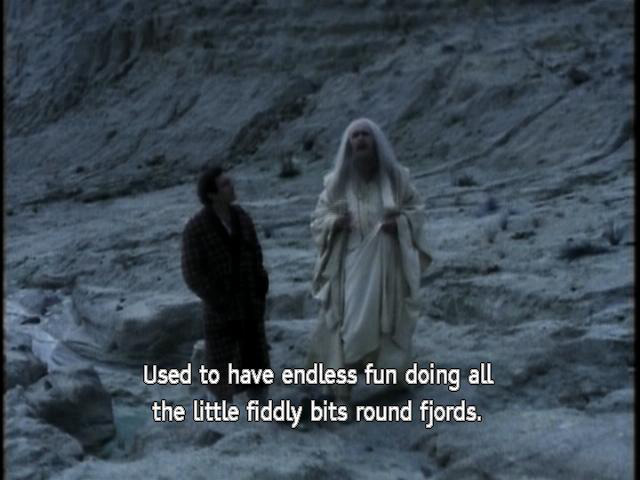 [Slartibartfast] Used to have endless fun doing all the little fiddly bits round fjords. [Slartibartfast] Well, anyway, the recession came, [Slartibartfast] and we thought it would save a lot of bother if we just slept through it. [Slartibartfast] So we programmed the computers to revive us when it was all over. |