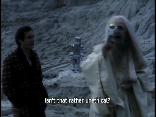 [Arthur] Isn't that rather unethical? [Slartibartfast] Is it? I'm a bit out of touch. [Slartibartfast] Is that your robot? [Marvin] No, I'm mine. |