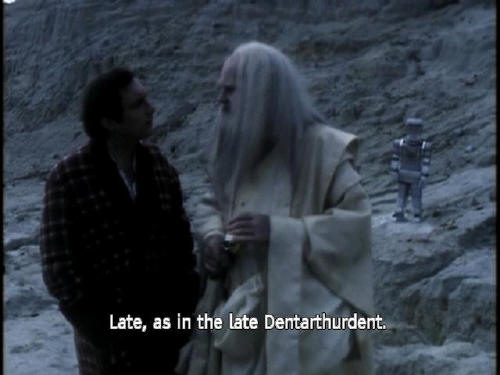 [Arthur] Dent, Arthur Dent. [Slartibartfast] Late, as in the late Dentarthurdent. [Slartibartfast] It's a sort of threat, you see. [Slartibartfast] Never been terribly good at them myself, |